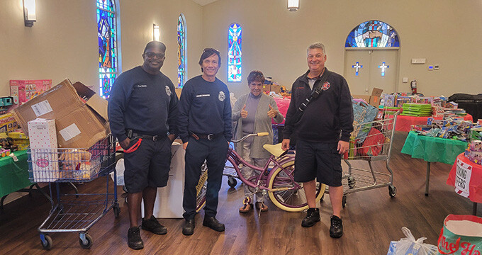 Fire Station 47, at 677 S. Hercules Avenue, was a huge blessing to Christmas FOR Pinellas this year. The firefighters started collecting toys in October and donated multiple car loads of toys to Open Arms. Their gifts meant we were able to give toys to additional families at Open Arms, as well as to kids at All Children’s Hospital! A huge thanks to George Lewis, Hieu Tran and all the firefighters at station 47 for the toys they collected and for everything they do in our community.