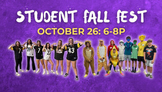 Join us for a Student Fall Fest from 6 to 8 PM. We'll have games, candy, snacks, and a costume contest! Feel free to bring a friend!